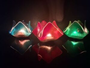 Antoons werkstukken zijn gemaakt van oud vensterglas. Hij voegt hier andere materialen aan toe b.v. glaspoeders, koperdraad enz. enz. Hij maakt diverse decoratieve en gebruiksartikelen.